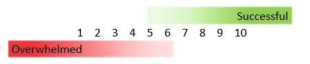 If success is defined as whatever is important to you or the business…fulfillment, achievement, results, recognition, promotion, responsibility, relationships, finances, growth, productivity, etc., where would you rate yourself on the scale below? 1 equals most overwhelmed and 10 equals most successful.
